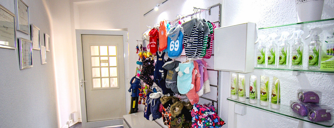 Im Salon finden Sie auch eine Shop-Bereich, wo Sie einige nützliche Artikel für Ihre Schützlinge finden.